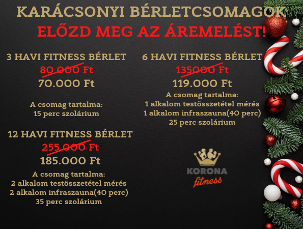 A KORONA FITNESS karácsonyi nyitvatartása az alábbiak szerint alakul: